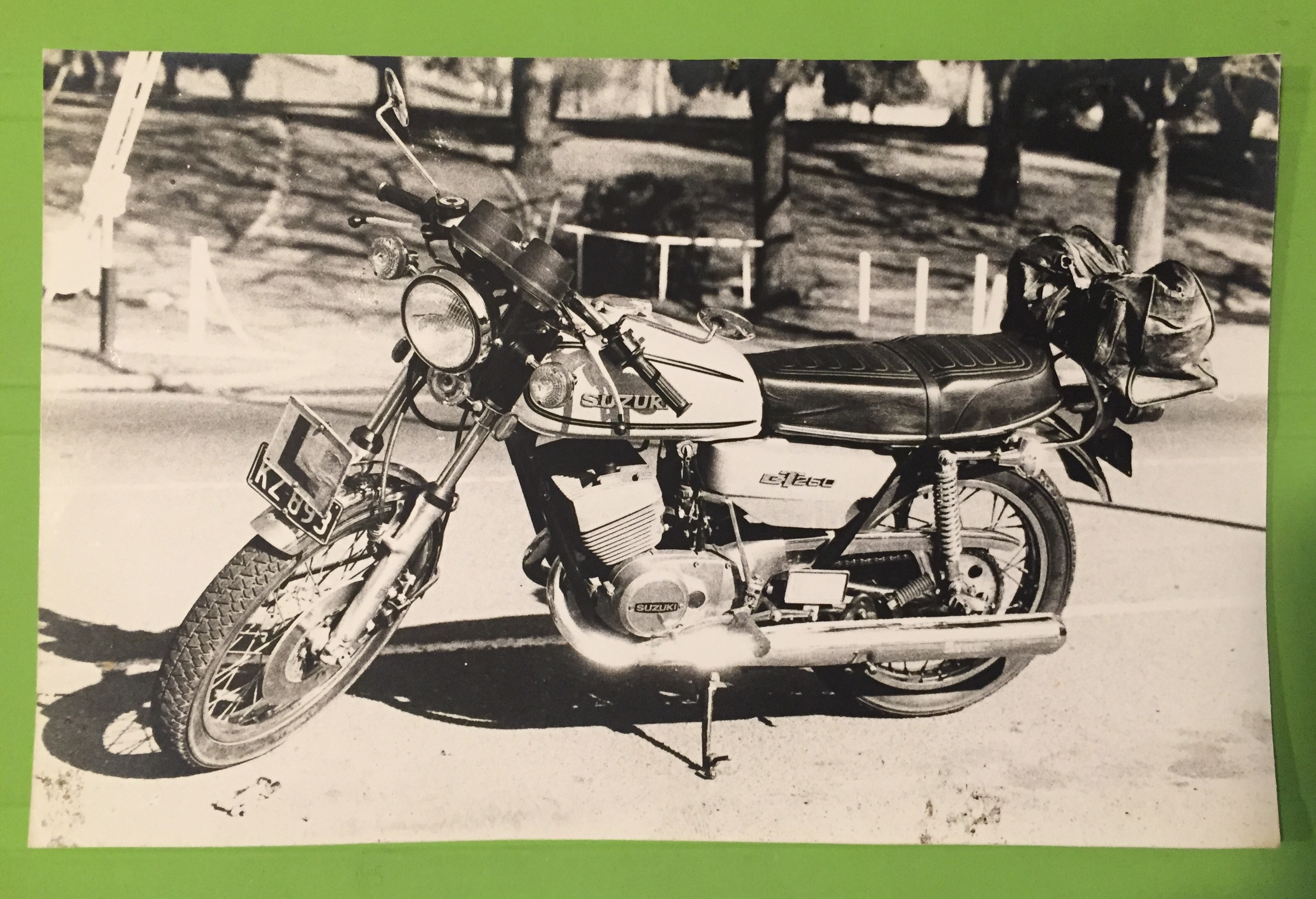 My first ‘set of wheels’ was a Suzuki GT250. It had a shiny silver tank with a black stripe.