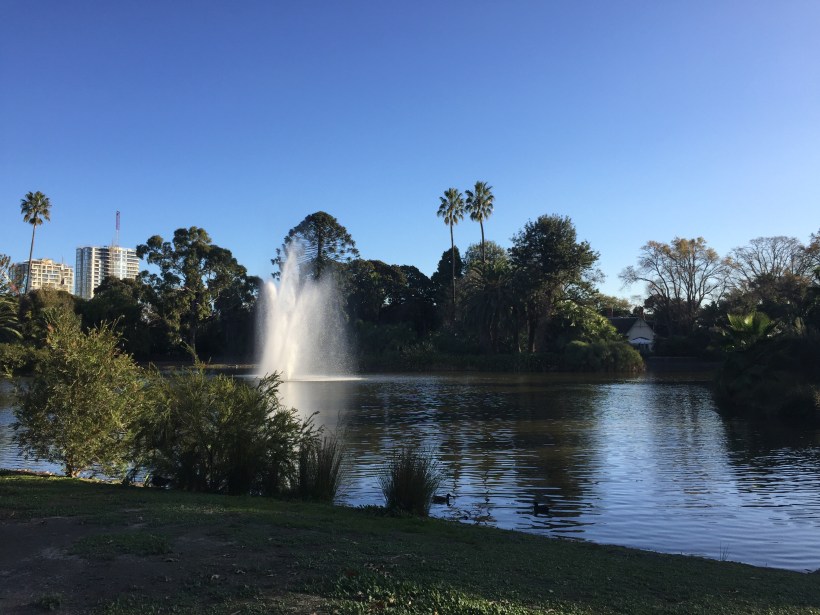 Our first stopover was a visit to my dermatologist in Moonee Ponds to check on a couple of spots that were a bit suss. We were early so we went for a walk in Queens Park, one of those gardens I have driven past many times and never stopped to visit. We were impressed immediately by the range of trees and shrubs and the iconic water fountain in the middle of the lake.